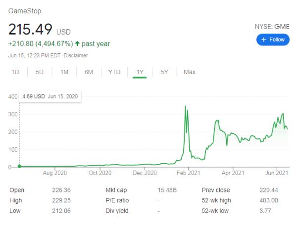 但游戏驿站(Gamestop,NYSE: GME)成长的烦恼却恰恰相反——今年年初,公司估值在散户和机构的“史诗级”交火中被推至前所未有的高度,后几经震荡,目前依旧维持在美股200美元以上的高位。