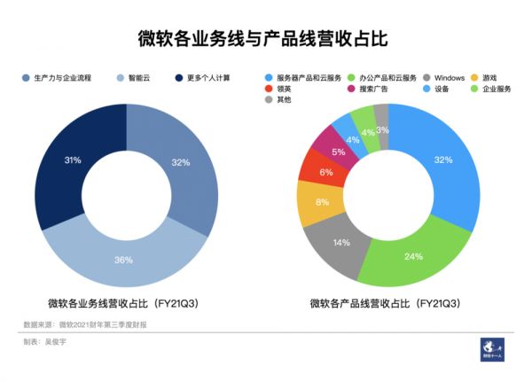 微软有两套业务构成的计算方式。第一种是按照业务线划分,第二种是按照产品线划分。无论是按照业务线划分、产品线划分,Windows的重要性都不可忽视。