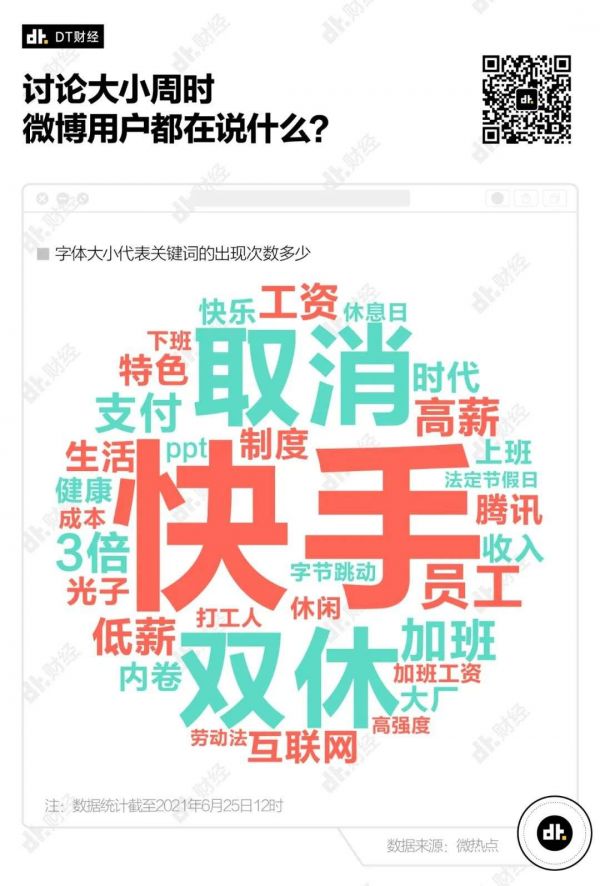 6月初,腾讯旗下的光子工作室倡导员工停止996;6月20日,#字节跳动1/3员工不支持取消大小周#成为微博热议话题;随后,6月24日,快手科技宣布将于7月取消大小周制度,让员工按需加班。