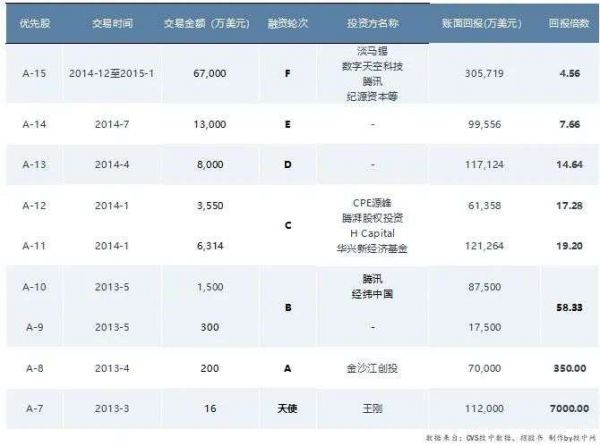 与最初投资快的相比,部分早期投资者的收益可以达到数十倍至数百倍,以2013年10月A-2轮投资400万美元的经纬为例,上市后这笔投资对应的权益总价值约6亿美元,总回报近150倍。