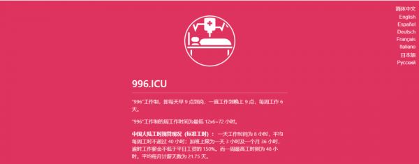 与此同时,一场以程序员为发起者的“反抗996战”悄悄拉开帷幕。2019年3月底,一个名为“996.ICU”的项目在著名代码社区Git Hub上传开,并迅速成为社区最受欢迎的项目。