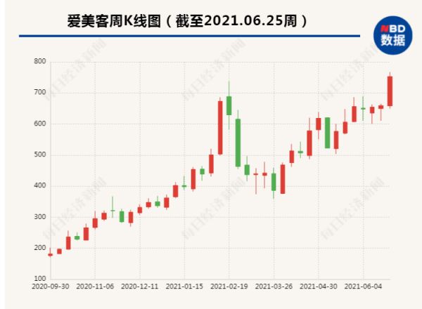 受相关消息影响,6月25日爱美客A股股价盘中最高至766.88元(前复权)刷新历史新高,截至收盘大涨9.04%,报752.52元,市值达1628亿元。自今年3月25日创下近期低点359元以来,截至目前爱美客股价已翻番,涨幅累计114%。