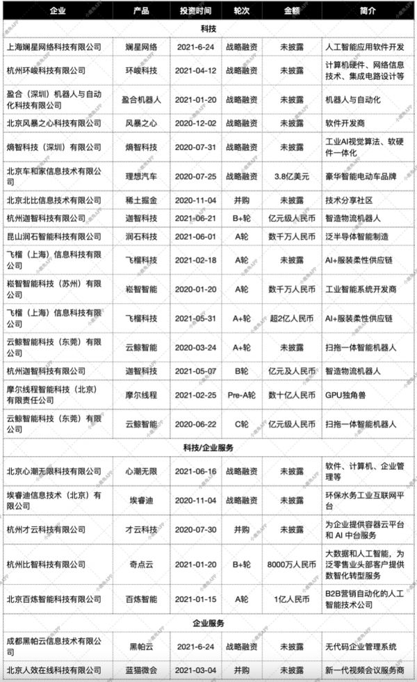 2020年至今的投资中,就有为零售业客户提供大数据服务的奇点云;专注B2B营销AI服务的百炼智能;提供云平台的才云科技;甚至还有帮助企业环保管控的埃睿迪。字节跳动的to B业务帮助其进一步挖掘了技术的溢出价值,让技术具有了更强的直接变现能力。