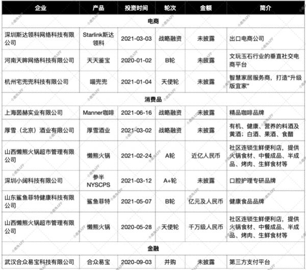在实体消费方面的投资有,社区连锁生鲜便利店懒熊火锅和精品咖啡店Manner咖啡。有健康食品品牌鲨鱼菲特、口腔护理品牌参半以及健康酒类生产商厚雪酒业。线下和线上的实体消费都受到了关注。