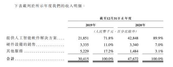 从招股书中可以看出,鹰瞳的主要收入来自于第一种,也就是软件,其提供人工智能软件解决方案在2020年的收入占比达89.9%,与2019年的71.8%相比增幅较大,这也意味着在2020年8月产品拿到三类证的获批后,鹰瞳的商业化进程进一步提速。