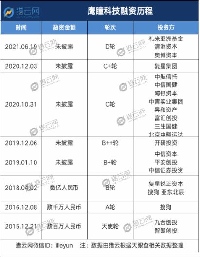 如今,完成了D轮融资的鹰瞳科技,加速了迈向二级市场的步伐,从A股转战B股,在6月21日递表港交所。