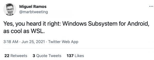 微软 WSL 项目负责人 Miguel Ramos 在推特上称“和 WSL 一样酷”。