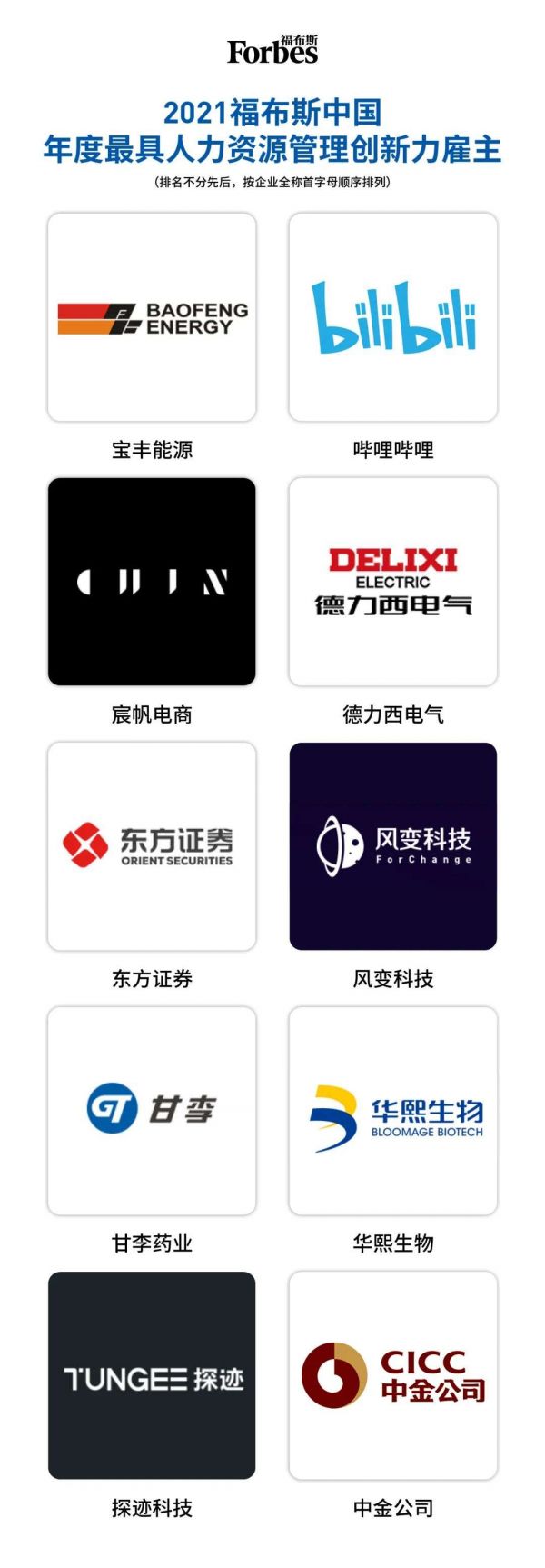 “2021福布斯中国•最佳雇主”发布:B站上榜