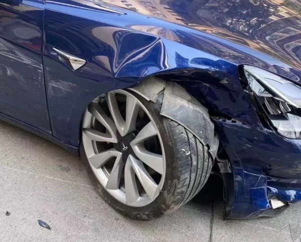 河南安阳特斯拉车主张女士的事故车辆