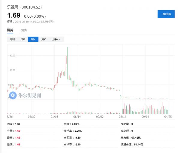 从2010年上市,到2015年5月创出的179.03元股价,再到2016年下半年传出资金链紧张的消息,再到贾跃亭远走美国,乐视网的股价也是一路跌到停牌前的1.69元。