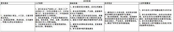 农村发展领域。鼓励改造农村商业网点,满足农村居民消费升级需求,发展线上线下结合的网点。参与一二三产经营、公共服务、乡村治理、基础设施建设人才培养,建设人才培训基地,建设产学研用协同创新基地等创业孵化园区。参与农村道路、供水、储气供气等基础设施建设领域投资。鼓励参与农村厕所革命、垃圾处理、村庄清洁和绿化行动。