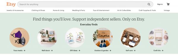 在全球电商市场风云变化的一年半时间里,不仅 Amazon、Shopify 等主流电商平台顺势而上,诸多细分垂类平台也增长迅猛,比如总部位于美国的 Etsy,2020年其交易额增长达到了340%,堪称电商市场的一匹黑马。