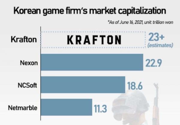 如此,Krafton将超越此前三星人寿上市时募资43亿美元的记录,成为韩国规模第二大的IPO(第一名为韩国电信,它1998年上市时募资了60亿美元资金)。另外,它的23万亿韩元估值也将使它轻松超过Nexon、网石等选手,问鼎全韩国最大游戏公司之位。