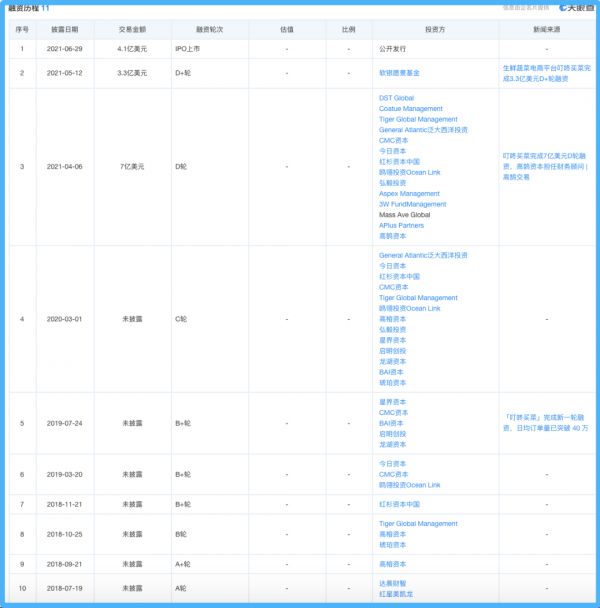 突出的业绩很快吸引了资本关注,2020年以来,叮咚买菜已获得三轮融资,累计融资额超10亿美元,投资方名单众星云集,包括红杉中国、今日资本等一众明星机构。