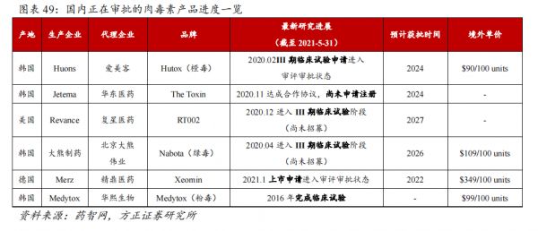 爱美客的肉毒素便是引进了韩国Huons公司的产品,目前,相关产品正处于临床试验阶段,预计将在2024年获批上市。