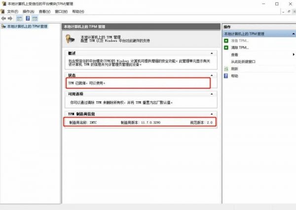 这里如果显示 TPM 已开启且是 2.0 版本就表示电脑是正常配备 TPM 安全模块的。