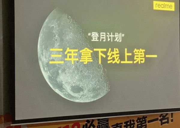 在618之后的内部庆功会上,realme提出了一个“登月计划”:三年拿下线上第一。要知道,过去三年,“线上第一”一直是荣耀的囊中之物,以“登月”命名的这份计划,承载了realme太多的野心。