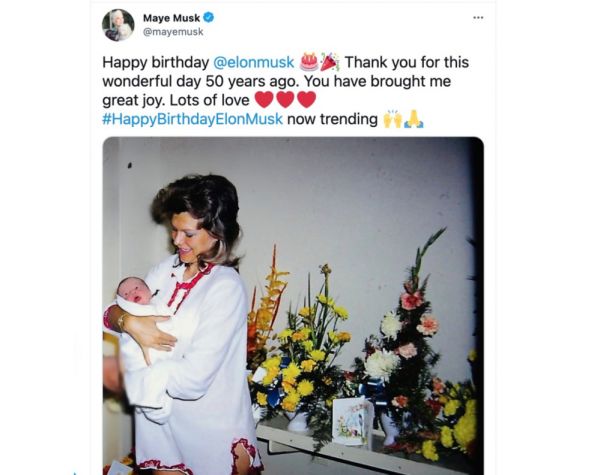 马斯克的母亲Maye Musk在马斯克生日当天晒出的出生照,图片来自于Maye Musk的Twitter