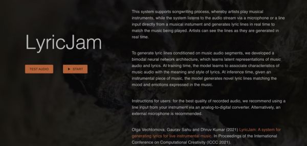 感兴趣的朋友可戳在线链接试玩,系统操作非常简单,录入一个音频就可以:https://lyricjam.ai/