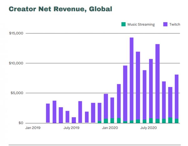 如此一来,音乐人也能更快地从平台获得收入。传统音乐流媒体平台支付音乐人收入时,音乐人通常要在结算后再等6-8个月,对于词曲作者甚至可能更晚。而Twitch承诺,当月收入会在下月月底前支付。