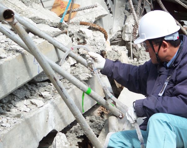 图注:机器人辅助搜索救援中心,佐藤多科罗博士在2007年伯克曼广场II(佛罗里达州杰克逊维尔)停车场坍塌处插入主动瞄准镜相机机器人。