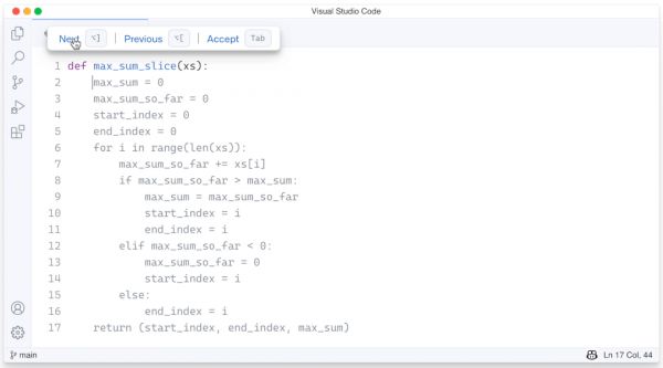 Copilot 可以提供多个备选方案的代码供程序员选择。
