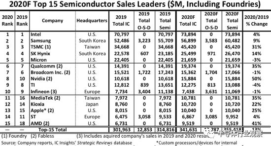 近日,知名分析机构ICinsights发布了他们对2020年半导体企业营收排名的预测,在他们提供的榜单中,苹果公司(AAPL.US)将以100.4亿美元的营收位列第13,比去年的名提升两位,而营收方面较之去年提升25%。最近,苹果新发布的M1芯片的表现也获得了行业的交口称赞。那么究竟苹果的芯片业务,在行业内究竟是什么水平?我们来看一下华尔街日报和semiwiki的作者分析一下。