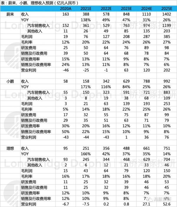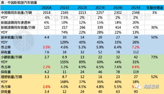 c. 理想:50%的高增速,隐含的是2021-2022年深耕增程式,后续电动车车型取得成功
