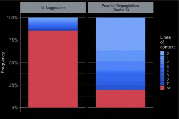 Ziegler 表示,测试的 41 个主要代码段,至少出现在 10 个不同的文件中,其中 35 个出现超过 100 次。测试期间,GitHub Copilot 在曾访问超过 70 万次 GNU 公共许可证后建议启动一个空文件。