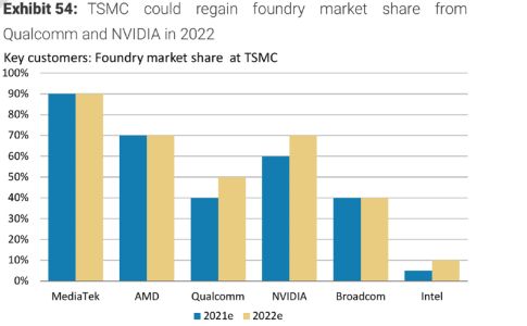 考虑到英特尔在芯片行业内的霸主地位,报告预测,2023年,台积电市场的份额可能会受影响。