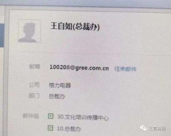 有网 传截图显示,王自如所属的部门为总裁办。
