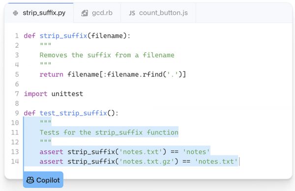 此外,导入一个单元测试包,GitHub Copilot就能建议匹配开发者实现代码的测试。