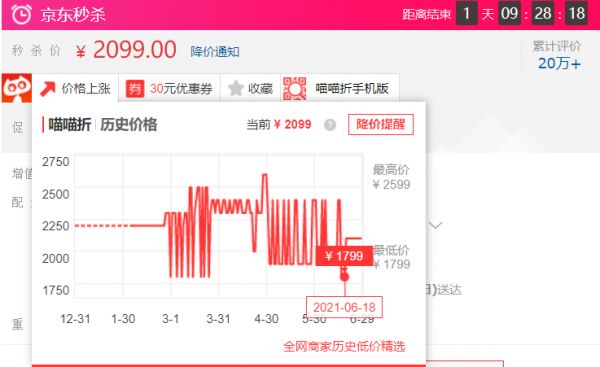 但是,大家会发现一些平时经常“秒杀”“优惠”的产品,逐渐进入到长时间稳定在一个价格上的状态,实质上已经是涨价了不少。比如某个传统品牌的新款智能空调,如果不考虑京东本身的促销补贴和优惠券,那么该型号仅仅比平时最低价优惠了100元,而且在618之后一直都保持在一个十分平缓的价格上,没有再参与其它的优惠活动。