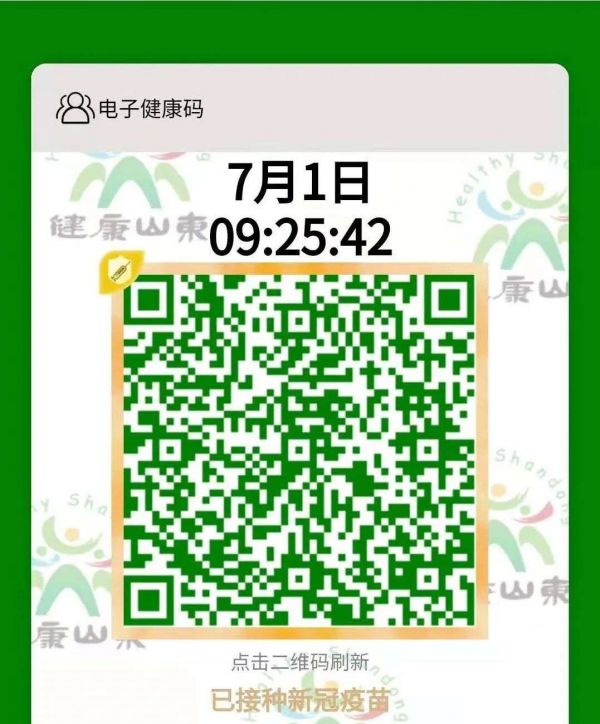 如今,健康码还会通过“金盾”来代表已接种新冠疫苗。图片来源:派派的健康码