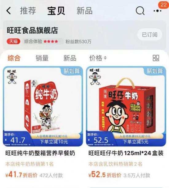 据旺旺2020年的财报,其乳品及饮料为收入110.1亿元,同比增长了12.2%。尽管旺旺未披露纯牛奶的具体销量,但从旺旺纯牛奶在旺旺官方旗舰店的销售热度来看,纯牛奶这一新产品,对旺旺乳品整体的销售增长是起到了一定推动作用的。