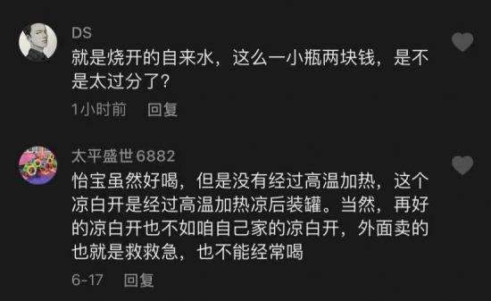 这并不简单。“螳螂财经”随便点开某位测评博主发布的凉白开相关的视频,就发现评论区出现了两种截然不同的“声音”:一个觉得不值得,一个表达了认可。