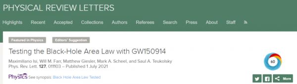 霍金和其他人后来证明了面积定理在数学上是可行的,但在 LIGO 首次探测到引力波之前,一直没有办法将其与自然相对照。