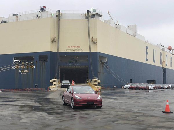 特斯拉狂奔:运送第二批Model 3的货船抵达上海港
