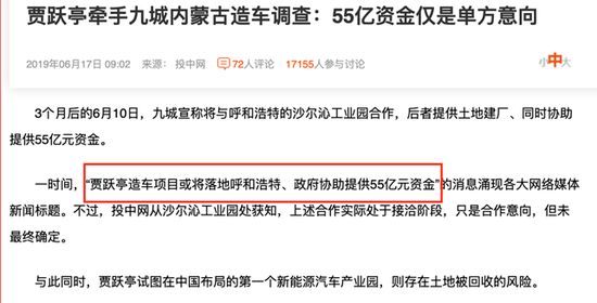 2019年,又有消息传出,“贾跃亭造车项目或将落地呼和浩特、政府协助提供55亿元资金”。