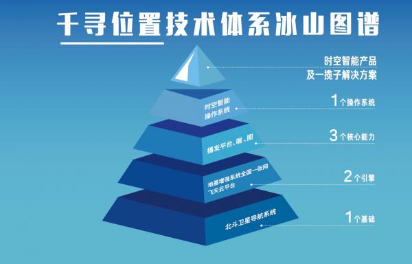 “1个源头”——北斗卫星导航系统:在千寻位置“冰山模型”的最底层,是北斗卫星导航系统,这是千寻位置开创时空智能的源头。