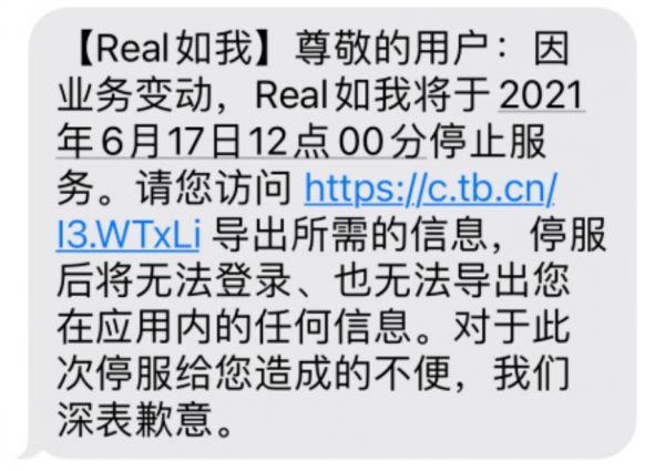 但在2021年5月,有不少用户收到了阿里“Real如我”的关停信息,意味着运营了近两年的“如我”并没有找到适合基于地理上的校园社交发展路线,并在6月17日停服运营,也宣告了阿里在社交领域上的再次失败。
