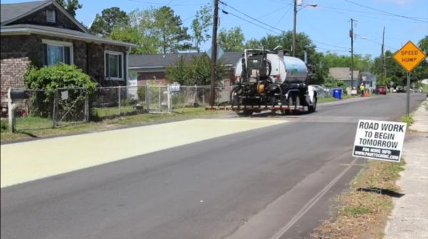 实际上,这种难题已经美国另一个州的城市攻克。近日,美国南卡罗莱纳州的 Charleston 县测试了一种全新的道路养护方式:给马路上刷满“涂改液”!