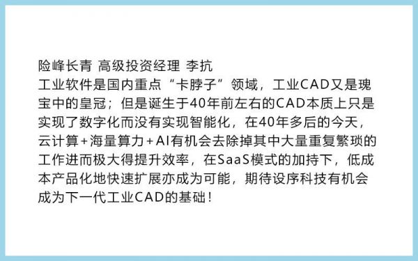 设序科技成立于2020年,此前先后获得了来自哈工智能的种子轮融资,和由险峰长青领投,高榕资本跟投,联想创投战略投资的天使轮融资。目前有员工近百人,其中研发人员占比过半。设序科技的CEO吴泳荣表示,未来公司的目标是深耕现有产品和业务的前提下,快速开拓其他工业设计领域,预计在三年内实现上亿营收。