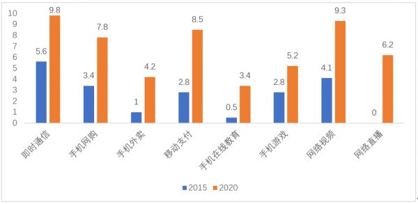 在运营商投入巨额资金大规模建设网络基础设施同时,也是移动互联网快速发展的时期。根据中国互联网网络信息中心发布的数据,2015年至2020年期间,各类移动互联网应用的用户数实现快速增长,很多应用用户数实现翻倍,从而驱动互联网各类业态的繁荣。