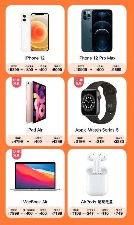 4.各大电商平台的补贴活动。以京东苹果自营店为例,618期间,iPhone 12系列的折扣力度可以说是非常大,iPhone 12乞丐版官方售价为6299元,减去平台补贴后,只需5099元,折算下来,直接便宜了1200元。
