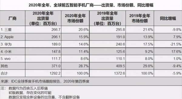 而IDC公布的数据显示,2020全年苹果在全球手机市场的出货量达到了2061万部,占据了15.9的市场份额,相比去年同期增加7.9%,排名第二。由此可见,iPhone 12系列的发布,确实帮助苹果获得了更多的市场份额。