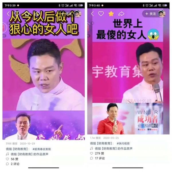 为什么成功学、财商课程开始频繁给女性灌输理念了呢?其实不是因为女性群体潜藏的消费能力,而是迎合和讨好女性在短视频平台更容易获取流量,这和抖音、快手里蔓延的女性至上倾向如出一辙。