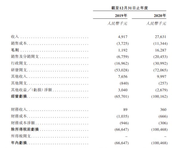 然而由于销售及分销开支、研发开支以及与公司持续经营相关的行政开支所产生的成本,2019年和2020年连续两年净亏损,年内亏损金额分别约为6,664.7万元、10,046.8万元。