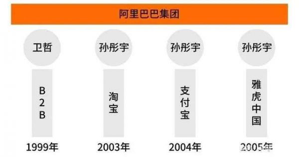 2005年之前,阿里从单一B2B发展到四大业务;2007年,阿里提出“大淘宝”战略,进行了一系列合并,阿里妈妈、淘宝网合并,雅虎被整合进阿里云,阿里软件云整合进阿里研究院;2010年,淘宝拆分“C2C、B2B、搜索”;2012年,6大子公司拆分为7大事业群。
