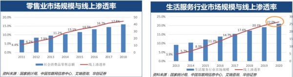 艾瑞咨询数据显示,到2025年,中国本地生活服务市场规模将从2020年的19.5万亿元增长到2025年的35.3万亿元,本地生活服务线上渗透率也将由2020年的24.3%,增至2025年的30.8%。